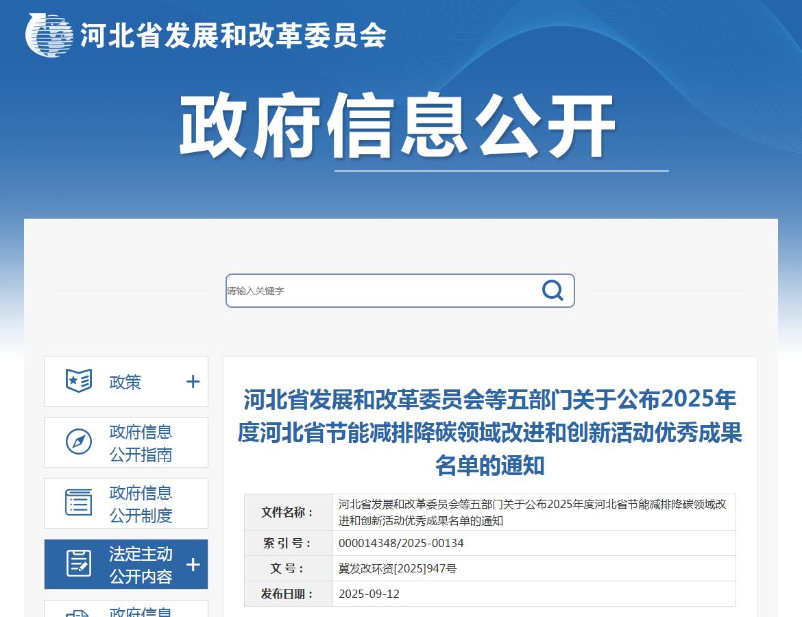 五部门印发2025年度河北省节能减排降碳领域改进和创新活动优秀成果名单