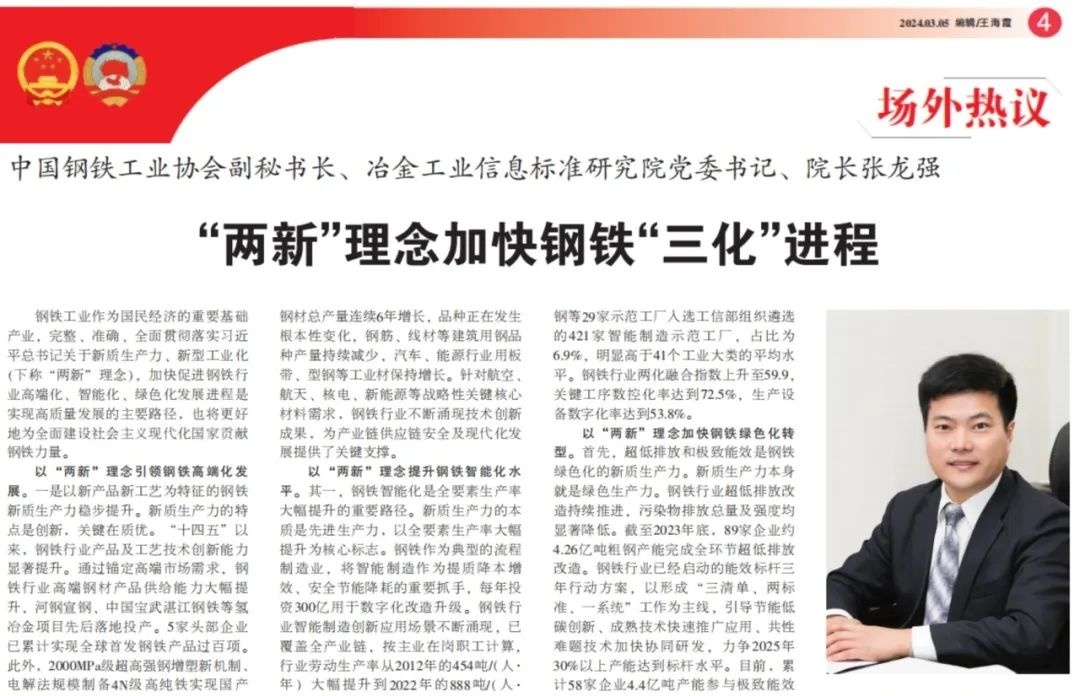 龙强看两会 | 中华建筑报:“两新”理念加快钢铁“三化”进程