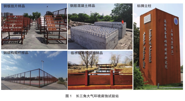 我国已建成多个大气环境试验站,但经济发达且具有高湿度和酸雨型复合气候的长三角地区尚未建立国家级大气站。针对该情况,董瀚教授团队开展了总面积逾7万平方米的长三角大气环境腐蚀试验站(如图1所示应用实例)的建设工作。样品暴露在长三角大气腐蚀站的试验结果表明,稀土合金化的普碳钢耐蚀性可提升30%。