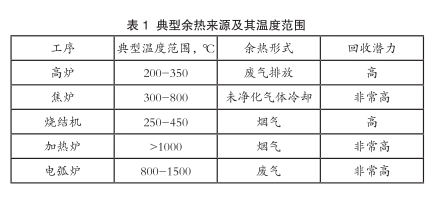 钢铁冶炼涵盖高炉(BF)、转炉(BOF)、电弧炉(EAF)、烧结、焦化及再加热等多个高热负荷工序。据统计,约20%-30%的输入能量以废热形式通过烟气、冷却水或辐射途径散失至环境中。若未加以回收,此类能量损失将直接转化为运营成本增加与碳排放上升。表1数据表明,钢铁厂具备广泛的中高温余热资源,为实施系统性余热回收提供了良好基础。