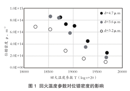 试验结果显示,块径对位错密度的回复具有显著的抑制作用(图1)。随着回火温度参数的增加(即回火温度升高或时间延长),所有试样的位错密度均呈下降趋势,但细块径试样的下降速率明显低于粗块径试样。这表明,细小的马氏体块径能有效阻碍位错的回复和重排,从而延缓软化过程。此外,研究还发现,淬火温度的变化不仅改变了块径,还可能通过影响固溶元素含量,进而改变二次碳化物的析出行为,这也对抗软化性产生了一定的协同作用。