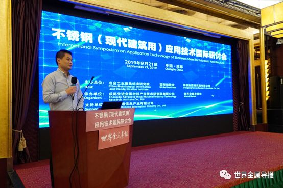 9月21日,“不锈钢(现代建筑用)应用技术国际研讨会”在成都成功举行。本次会议由冶金工业信息标准研究院、国际镍协会、攀钢集团研究院有限公司主办;由成都先进金属材料产业技术研究院有限公司、世界金属导报社承办;江苏瑞通信息产业有限公司等单位支持举办。