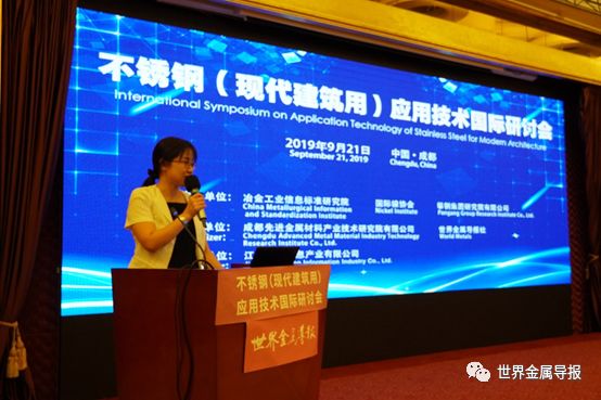 付静对参加此次研讨会的代表们表示热烈欢迎。她表示,冶金工业信息标准研究院作为国务院国有资产监督管理委员会举办的事业单位,一直致力于成为“政府、行业和企业信赖的冶金信息和标准化科技服务机构”。近年来,在不锈钢领域,冶金工业信息标准研究院致力于促进中国标准的制修订以及“走出去”,发挥标准的支撑与引领作用;开展全球不锈钢科技信息资源采集、加工和服务,提供不锈钢科技查新、知识产权等服务。除此以外,还充分发挥世界金属导报社全媒体平台优势,致力于向世界宣传和推广中国不锈钢产品和技术,打造中国不锈钢品牌。希望通过本次会议,搭建一个国内外互相交流的平台,展示取得的成果,研究未来发展,进一步推动我国不锈钢在建筑领域的研究与应用,促进中国乃至全球不锈钢行业的发展。