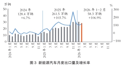 从1-2月汽车行业运行情况看,汽车产销受政策切换调整、需求前置释放、春节假期错位、消费意愿不足、同期高基数等多重因素叠加影响,同比呈现下滑。其中,乘用车市场和新能源汽车同比下降,商用车市场持续向好,汽车出口快速增长。