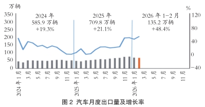 1-2月,汽车出口135.2万辆,同比增长48.4%。分车型看,乘用车出口117.4万辆,同比增长53.3%;商用车出口17.8万辆,同比增长22.4%。