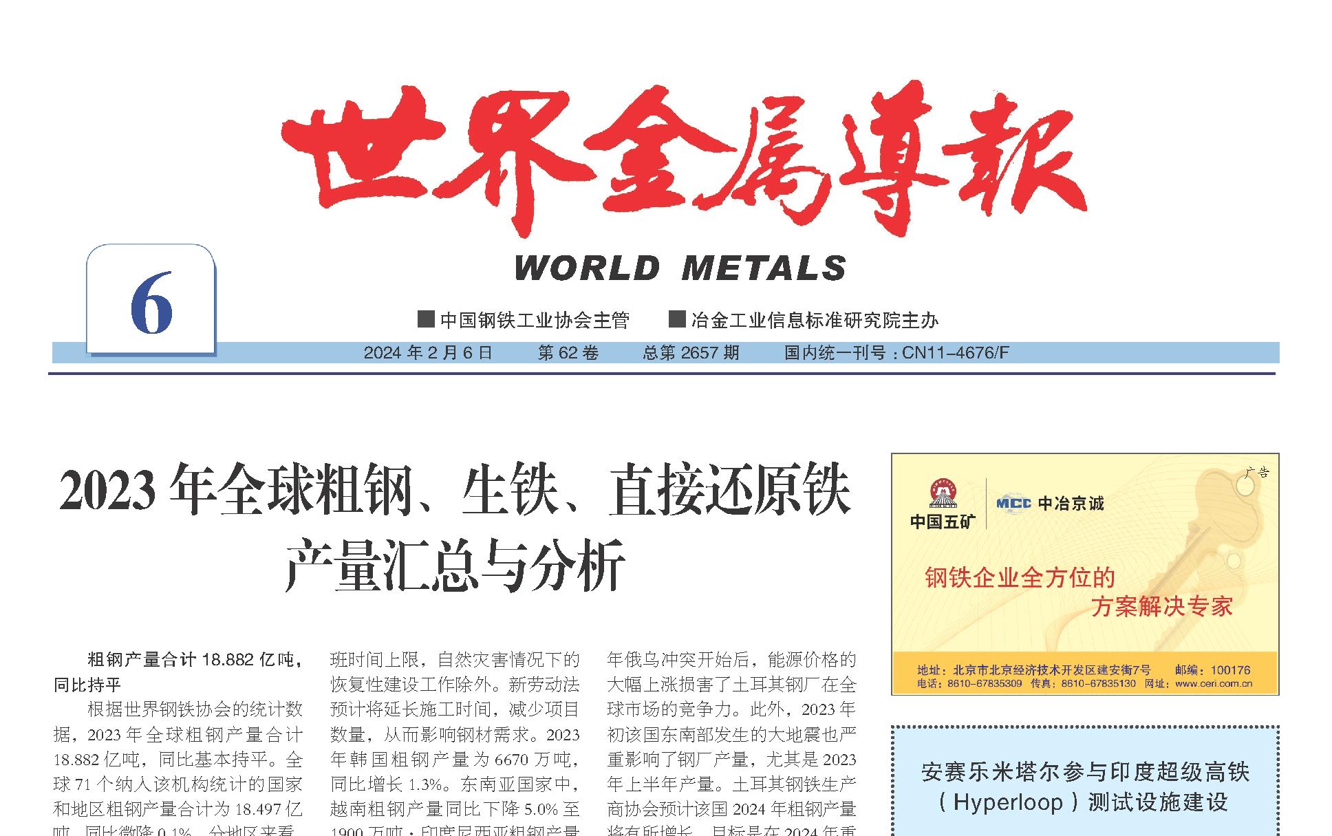 重磅发布!《世界金属导报》评出2023年度国内钢铁行业绿色低碳引领十大事件