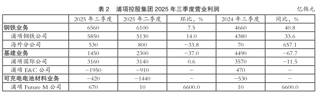 浦项控股集团钢铁业务自2024年四季度触底后,营业利润与净利润已连续三个季度呈现正增长的态势。2025年三季度,虽因钢铁产品售价下跌,集团销售额较二季度略有减少,但凭借产能利用率回升以及持续提升成本竞争力,营业利润实现增长。其中,浦项Future M公司与浦项国际公司凭借能源板块业绩改善实现营业利润增长,而浦项E·C公司则因计入安全相关费用及海外项目准备金,盈利能力有所恶化。可充电电池材料业务方面,受益于正极材料销量增加以及锂价上涨带来的存货评估损失转回等因素,三季度亏损幅度有所收窄。其中,浦项Future M公司三季度销售额较二季度增加2140亿韩元,达到8750亿韩元;营业利润较二季度增加660亿韩元,达到670亿韩元,成功实现业绩改善。其营业利润率也升至7.6%,较二季度提升7.5个百分点,实现超预期盈利。这一成果得益于正极材料销量增加、产能利用率提升以及存货评估转回等因素。基础设施业务领域,受益于夏季电力需求增长带动的发电业务收益向好,以及澳大利亚Senex天然气田销量增加,主营能源业务及钢铁和材料贸易的浦项国际公司2025年三季度销售额较二季度增加1040亿韩元,达到82480亿韩元;营业利润为3160亿韩元,较二季度增加20亿韩元。其中,能源板块销售额达12260亿韩元,较二季度激增3050亿韩元,成为拉动销售额增长的核心动力。特别是夏季电力需求增加带动发电业务收益向好,叠加Senex气田销量上升,推动营业利润增加480亿韩元。不过,受销售疲软及海外钢铁贸易环境变化等影响,钢铁及生物材料(原料/粮食/工业材料)整合板块业绩承压,销售额较二季度减少2010亿韩元,降至70220亿韩元;营业利润较到季度减少460亿韩元,仅为1190亿韩元。最后,浦项E·C公司则因新安山船事故损失预估金额计入业绩,且为开展安全检查暂停韩国国内全部103个施工现场的作业,导致营业利润下滑。